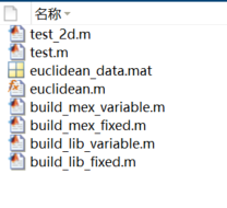 运行完成后,文件夹中会出现如下文件: 本案例中使用的文件为: euclidean_data.mat、euclidean.m 和 test.m。 euclidean_data.mat包含两段数据:三维欧几里德空间中的一个点以及三维欧几里德空间中的一组其他点。更具体地说: