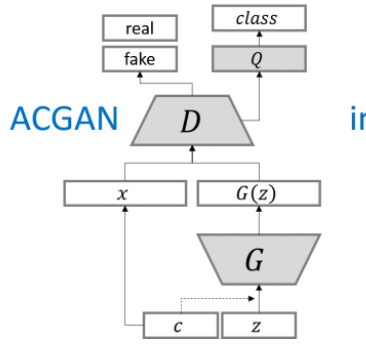 一、ACGAN介绍及其结构 1.1 ACGAN介绍ACGAN全称Auxiliary Classifier GAN,是在CGAN基础上的扩展,通过对判别器进行改进实现了图像分类的功能,论文链接:https://arxiv.org/abs/1610.09585 原始GAN网络的功能比较简单:输入噪声数据,输出伪造图片。而后CGAN发现可以通过给GAN的生成器添加辅助信息(比如类别标签),来实现生成图片类别的精确控制。本文介绍的ACGAN是在CGAN基础上的进一步拓展,采用辅助分类器(Auxiliary Classifier)使得GAN获取的图像分类的功能。