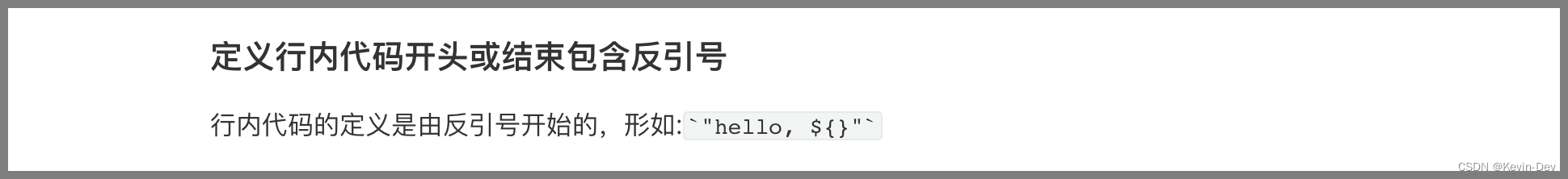 行内代码的定义是由反引号开始的,形如:`"hello, ${}"`