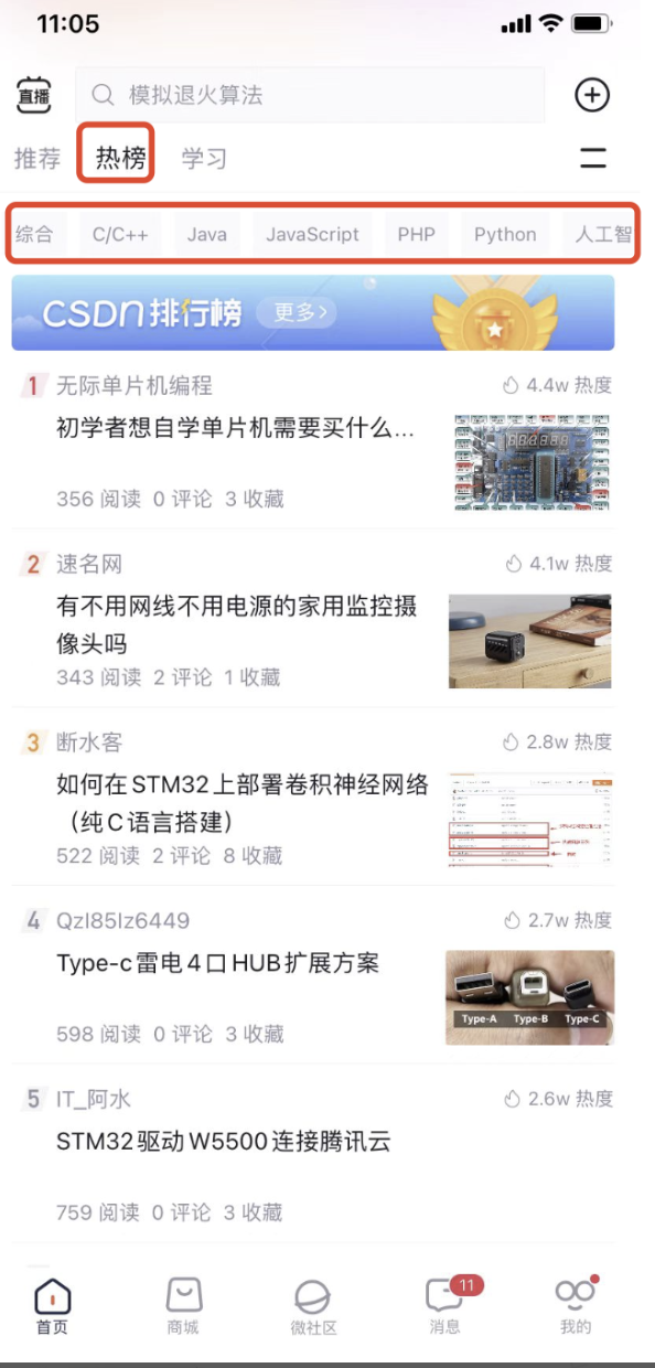 一、CSDN APP V5.1.0版本发布 1、首页导航支持自定义首页增加用户自定义导航,推荐、热榜顺序固定且不可隐藏,其他均可自定义顺序及设置是否展示;另外,自定义的导航不与用户绑定,只做本地存储,即更换其他手机登录原账号,首页不展示调整过的导航。