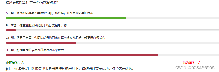 通常用灯来表示:绿灯表示构建成功,当失败的时候则亮红灯。常见的一个设计是红色和绿色的熔岩灯-不仅仅给出这些构建状态的指示,而且还指示已经处于该种状态多久了。红色熔岩灯上的气泡表明此次构建已经失败很久了。每个团队都可以自己选择构建传感器一当然你的选择也可以是很好玩的 (最近我看到有人在用一只跳舞的兔子)。