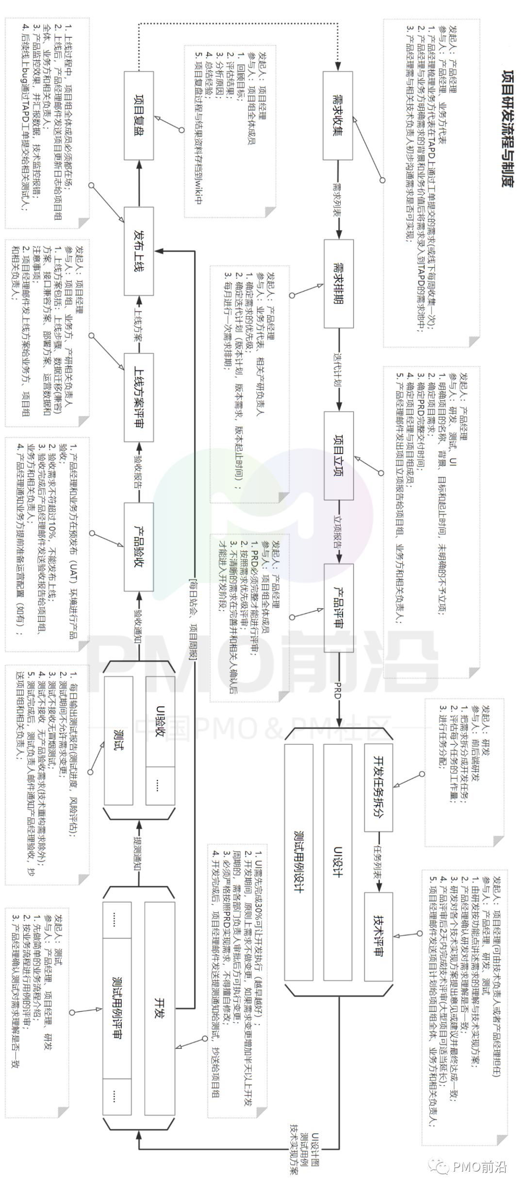 一个完整项目研发流程和制度对公司的项目推进至关重要,PMO和项目经理看似是建立一个流程和制度,实际上是对公司各个部门和环境的配合协作的整合,是对多方利益的平衡,是对工作责任的划分,是对利益和成绩的分配。制定项目管理流程不仅要结合公司的实际情况,还需要更多地参考其他成熟的管理实例,才能搭建一个科学合理的流程规范。