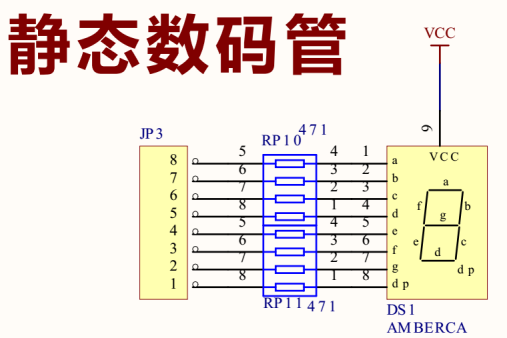 连线: JP10(P0)连接JP3,控制开发板最右边的一个独立大尺寸数码管。