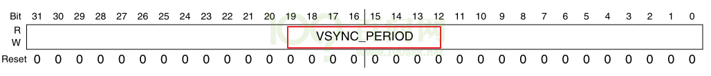 位域名读写描述[31:18]HSYNC_PULSE_WIDTHR/WHSYNC脉冲的宽度(单位:pix_clk)[17:0]HSYNC_PERIODR/W整行的宽度,即两个HYSNC信号之间的宽度(单位:pix_clk) 2.7 LCDIF_VDCTRL3寄存器LCD控制器传输完当前帧后,会把LCDIF_NEXT_BUF寄存器的值复制到LCDIF_CUR_BUF寄存器。