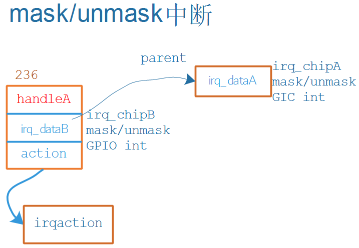 - 调用irq_desc[236].irq_data->irq_chip的函数,即irq_dataB
