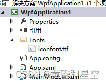 使用VS创建WPF工程步骤不再赘述,如下创建好的工程 导入IconFont字体到WPF工程: