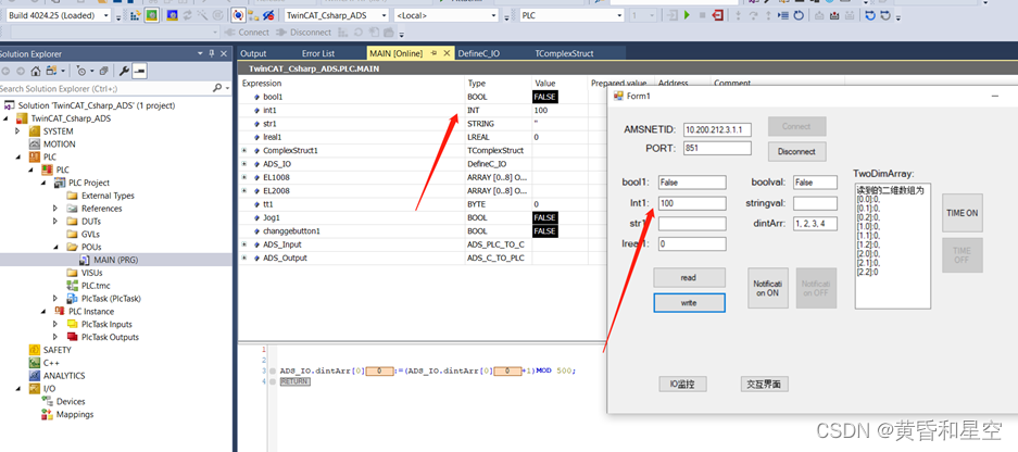 在倍福PLC和C#通信,采用ADS通信,本文讲解C#如何读取和写入int类型变量。