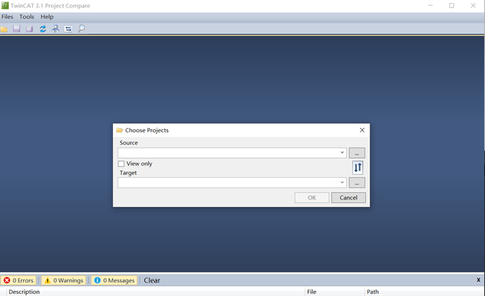 - 操作流程 1.1. 程序比较 1.1.1. 离线操作 比较2个离线程序: 工具路径C:\TwinCAT\3.1\Components\TcProjectCompare\TcProjectCompare.exe