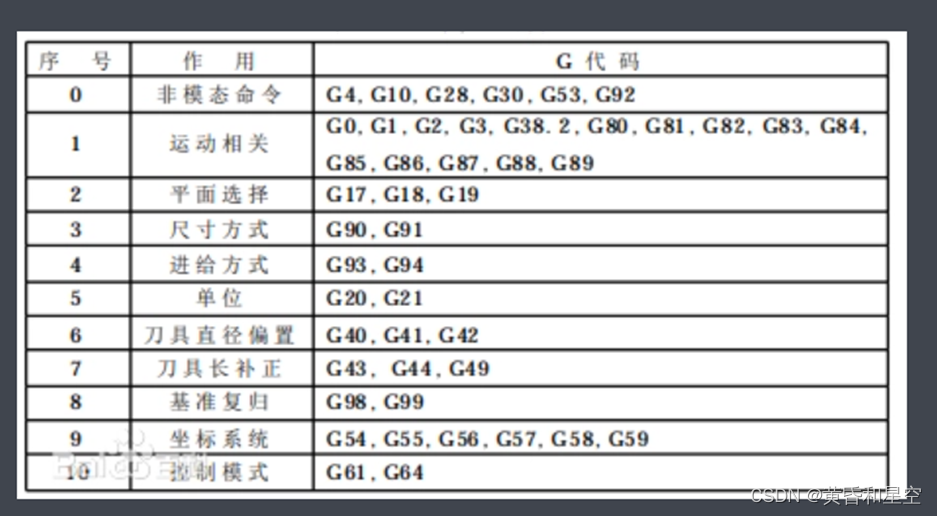 1.2. G代码的分组 分析, G 代码可以分为 10 组, 同组中的 代码只能在 一行代码中出现一次。G代码、M代码分组如图 1、图3所示。