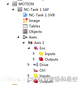 在MOTION中的Axes里会显示NC轴(通过扫描得到的NC轴会自动与物理轴相连)