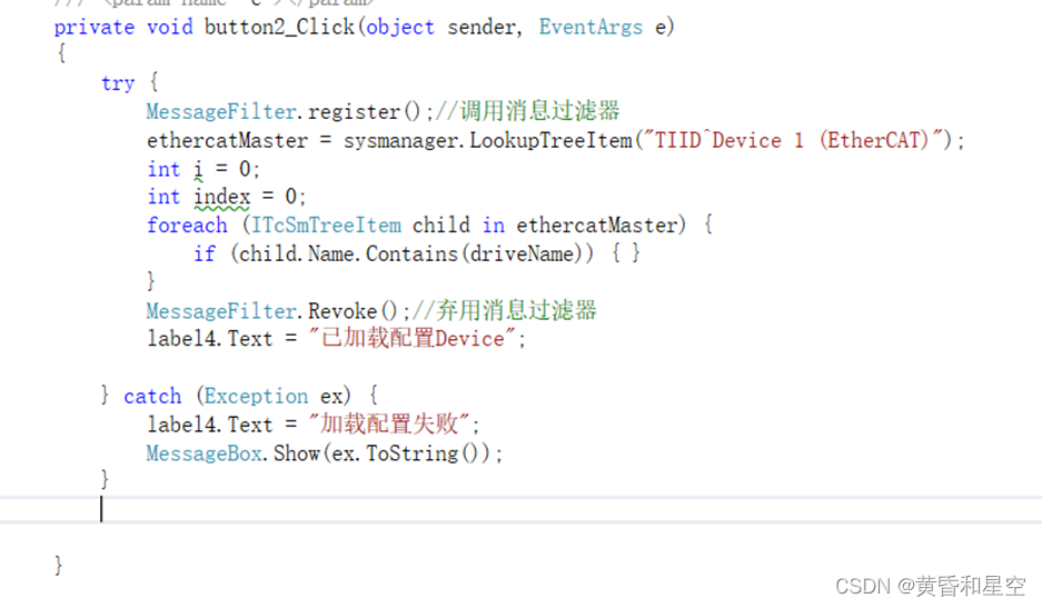 这样的话,就实现了在窗体运行中,点击按钮能触发Click事件的程序,点击本质起始就是调用button2_Click方法,因此,在其它程序执行过程中,如果想要点击事件触发, 直接调用该方法即可,如下所示