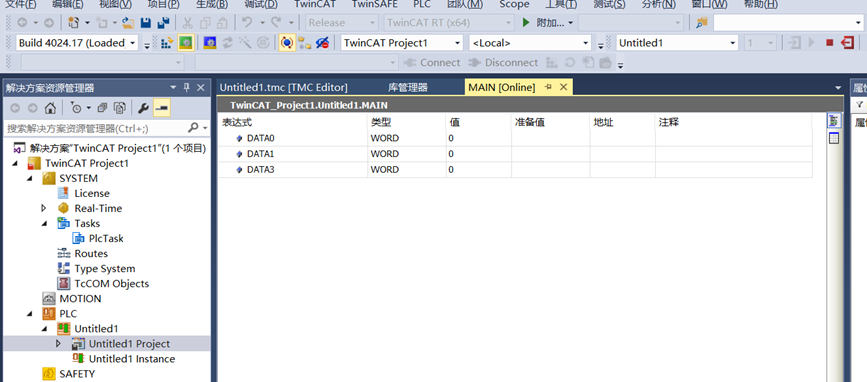 本实验使用两台PC测试通过路由器访问OPC UA服务端的数据。其中一台运行TwinCAT3并配置OPC UA作为Server,另一台作为Client,通过路由器访问Server端读取TwinCAT的变量并修改。