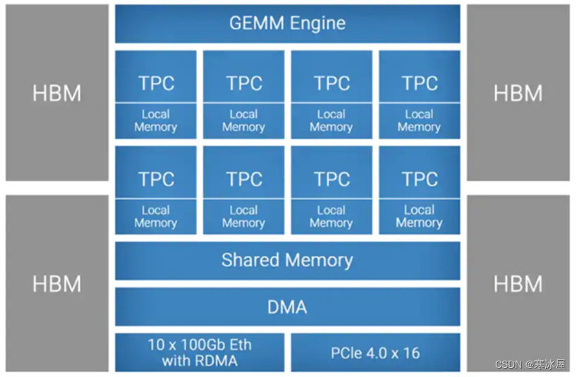 Gaudi 架构和Habana SynapseAI®软件套件我们将从基本架构的概述开始。Gaudi旨在加速DL训练工作负载。其异构架构包括一组完全可编程的张量处理核心(TPC)及其相关的开发工具和库,以及一个可配置的矩阵数学引擎。