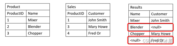 正如预期的那样,它包括Mixer和Chopper的行。它们匹配两个表,包括Blender和Fred Or。这些是来自不匹配表的行。如果您查看我们关于LEFT和RIGHT连接的示例,您会看到其中包含一个或另一个,但不能同时包含两者。作为SQL FULL JOIN,两者都包括在内。