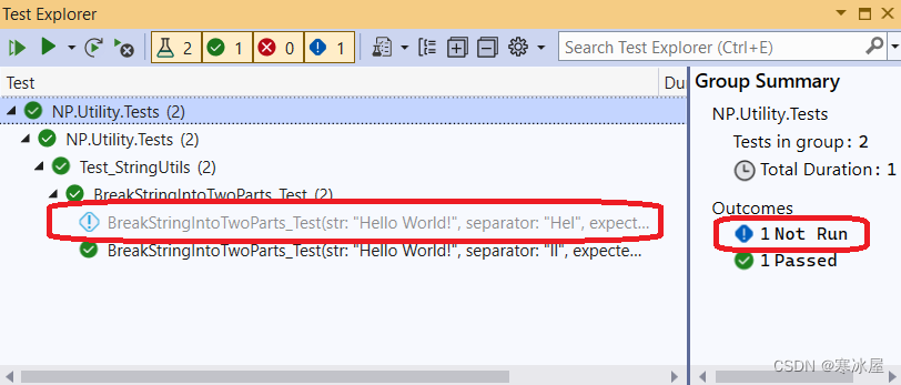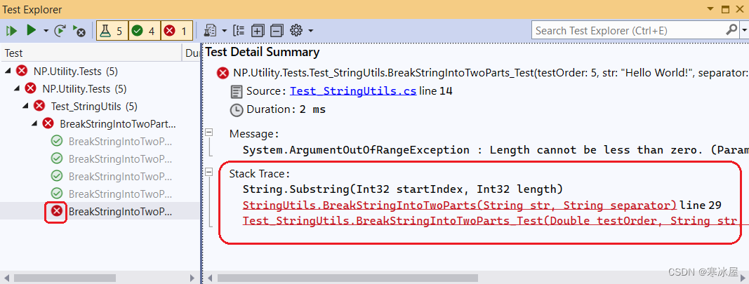 当然,为了确保我们的方法BreakStringIntoTwoParts(...)没有任何错误,我们需要测试更多的案例。