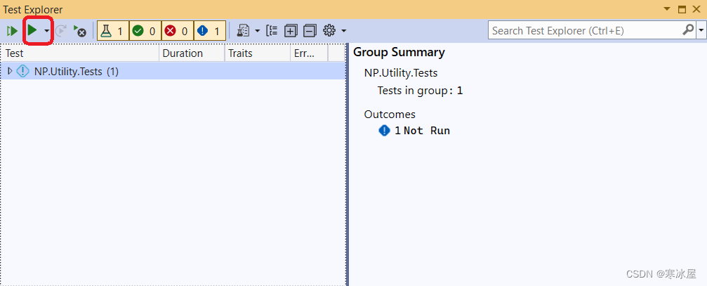在测试资源管理器中重新运行所有测试以刷新它们。新测试将在测试资源管理器中显示为未运行(蓝色图标):