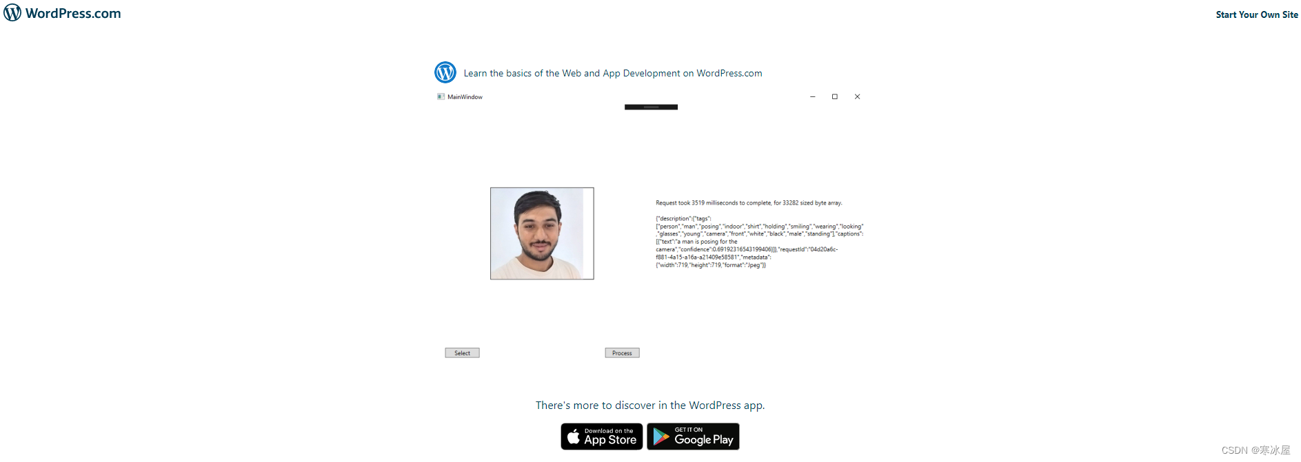 例子现在让我向您展示WPF应用程序中的一个小示例,该示例使用计算机视觉API来检测图像的全部内容。Azure将生成一个完整的句子来解释图像、图像中的对象以及正在完成的任务。