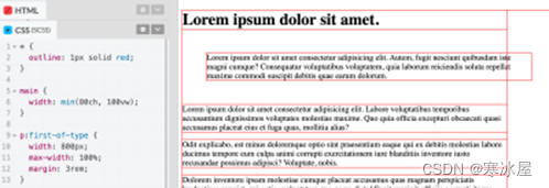 现在,说了这么多,我们通常不应该为元素提供绝对宽度。更常见的是,最好仅在需要控制元素大小时进行max-width定义。同样,这减少了与响应调整大小相关的错误。事实上,我们可以通过删除width和max-width值来完全解决我们示例的问题,这允许段落的默认行为让它在main父级的可用空间内适当地调整。
