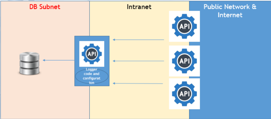 这里的另一个好处是你可以将你的数据库隐藏在你的内部网很深的地方,日志器服务需要对公司内部网内的微服务开放,给定安全级别,但你的数据库将在一个完全隔离的子网中使用日志器微服务的服务。