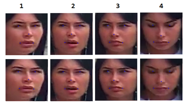 在视频检测器中使用新类Face_Align_Mouth并使用相同的视频文件启动它,我们得到以下对齐的人脸。