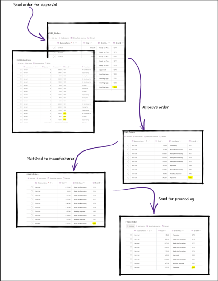 在每个阶段,我们的Dataverse表都会正确更新:
