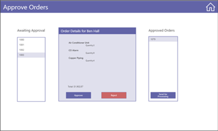 在他们的团队频道收到通知后,制造商现在可以打开应用程序、查看订单、发表评论并将订单发送给处理团队。