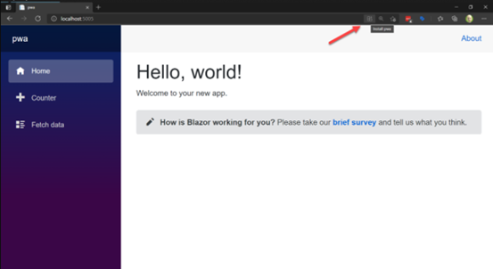 Blazor WebAssembly应用模板具有checkbox启用PWA的功能。在命令行中,只需使用--pwa开关,如下所示: