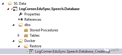 我们可以看到数据库LogCorner.EduSync.Speech.Database是通过Dockerfile上的脚本创建的
