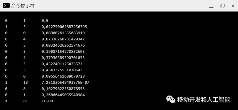第一列是一个bool值,指示该行是否为峰值。0 表示不是峰值,第二列是原始输入,第三列是逗号分隔的置信值。