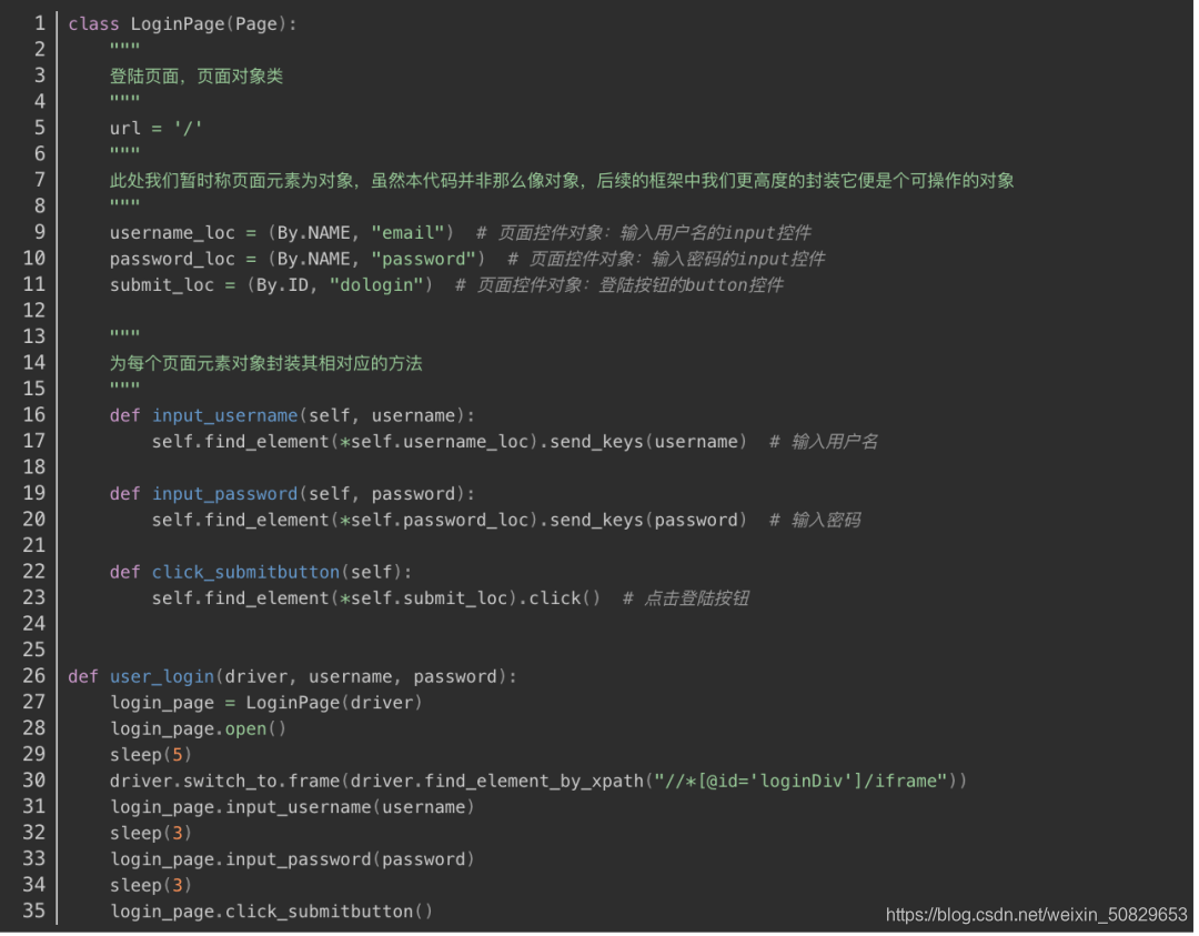 定义了基本页面类,接下来便是具体到每个页面,因为每个也面都有不同,定义具体页面类也是定义其不同,但凡有相同的都应该抽象到基本页面类中去定义