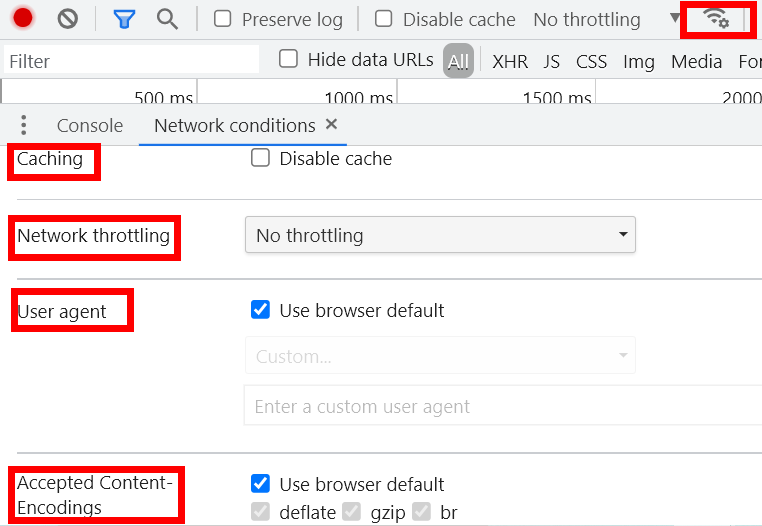 当打开开发者工具时生效,打开这个开关,则页面资源不会存入缓存,可以从 Status 栏的状态码看文件请求状态。