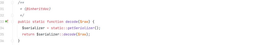 如果存在 yaml 扩展,$serializer 就使用 YamlPecl 类,之后会调用 YamlPecl 类中的 decode 函数;