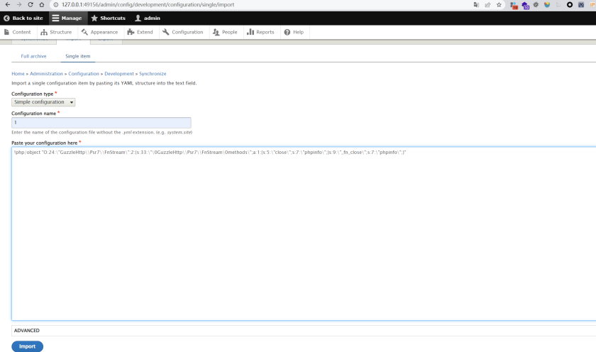登陆成功后访问路由 /admin/config/development/configuration/single/import