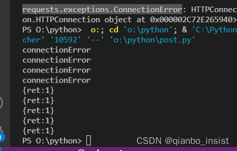python获取到数据后发送post 到另外一个服务器,使用requests就行,问题是: 服务器没有开,或者没有及时响应怎么半?如果不处理,程序会直接退出: