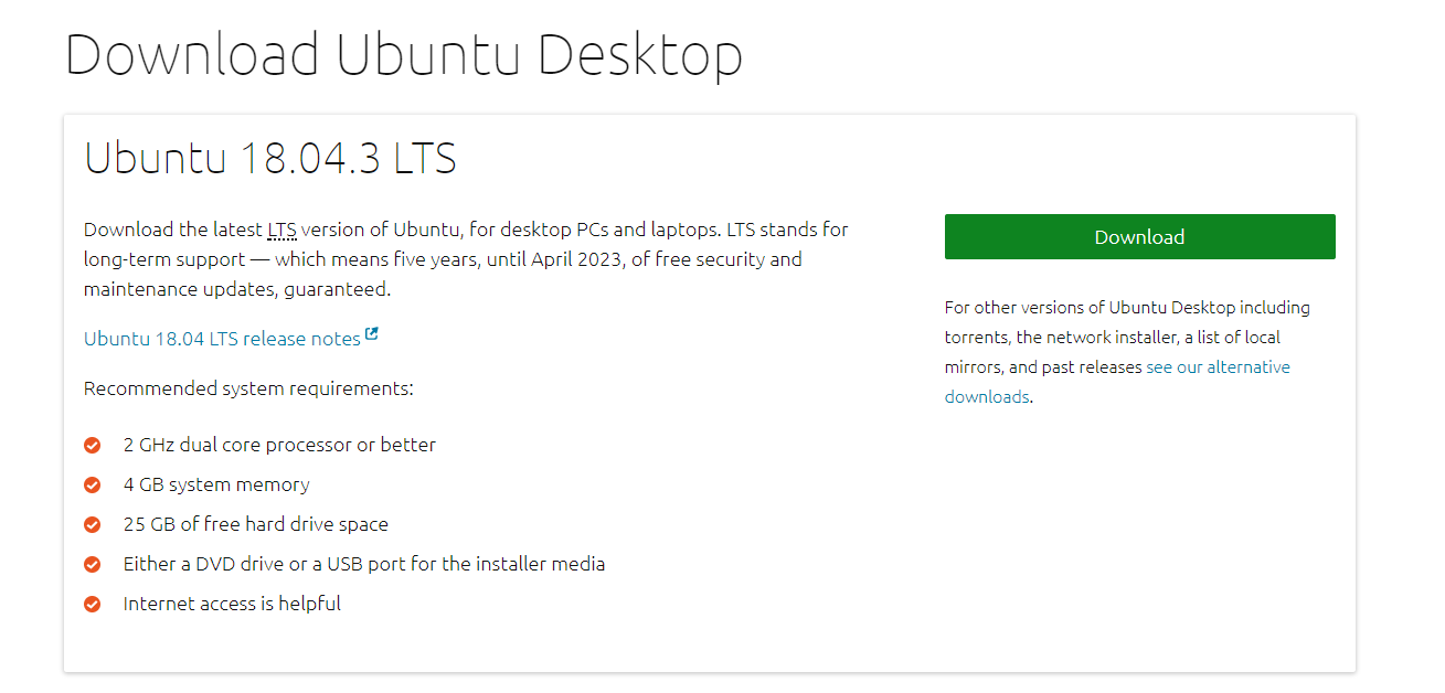 1.首先去官网下载安装包,直接下载就好,我的目的就是安装最新版本,要是想下载之前的版本可以在其他版本中下载,我下载的是稳定版。 https://ubuntu.com/download/desktop