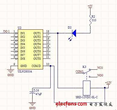 资料提供的ULN2803每一路能提供的驱动电流最大是500mA, 而SRD-12DC-SL-C的吸合电流是30mA,原理上用ULN2803同时驱动8路继电器输出电路是好像是可以的