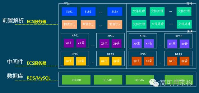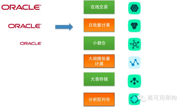 从数据库层面分成多个 RDS(阿里云一款基于MySQL的关系型数据库产品)。另外一个就是去Oracle,很多利用数据库存储过程计算的部分,移到计算单元完成。