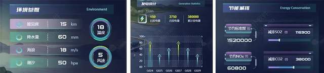 节能减排模块是在其他系统的基础上高度整合,实现节能信息共享和智能管理,在线显示节约标准煤和 NOX 数量以及减排的 CO2 和 SO2 总和,有效提升海上风电运用和管理的效率和效能。为支撑能源清洁低碳转型、助力“双碳”目标实现贡献积极力量。