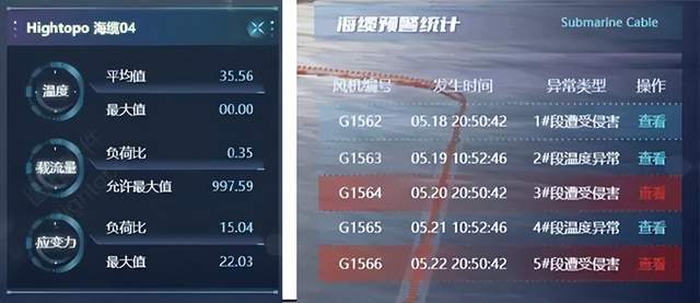 可根据实际情况自由设置告警类型,例如温度异常,环境侵害等,并实时刷新显示异常状况。并通过对应风机对海缆异常进行报警和定位,判断电缆是否受损或周围环境是否发生变化,保障海缆安全运行。