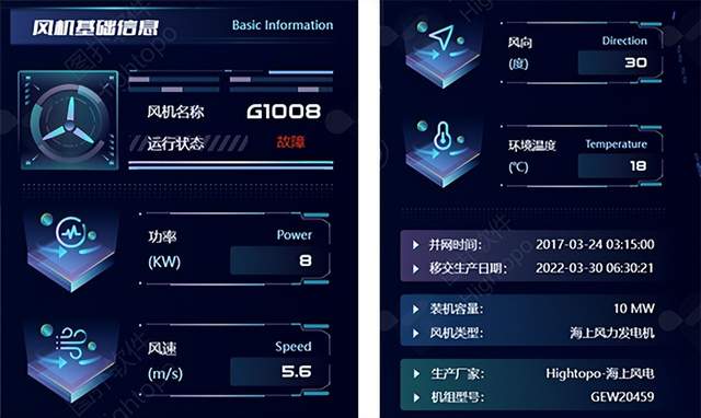 我们还设计了炫酷的一站式风机数据可视化展示平台,自由部署实时数据,项目运行状态和健康状态尽收眼底。