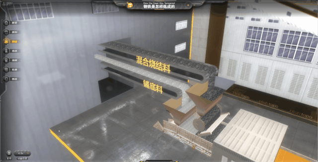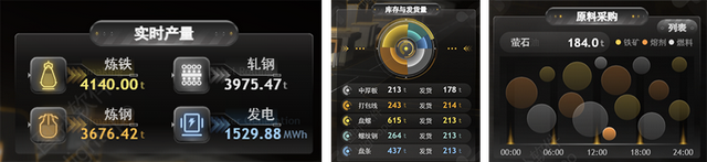 钢铁是怎样炼成的在方大九钢公司的生产调度室,与传统的生产监控完全不同,大屏幕上除了工业摄像头的实时显示,还有依托图扑软件打造的 3D 模拟全流程动画的实时显示。3D 模拟动画对生产线所有机组、设备状态、生产状态能够实时显示出来。并在右侧 2D 面板显示重要的生产和质量数据。场景内点击“首页”按钮自动弹出,展示实时产量、库存与发货量、原料采购、环保数据与能源系统等信息。与实景相互配合,给所有调度人员更全面的生产信息。