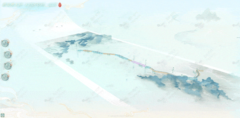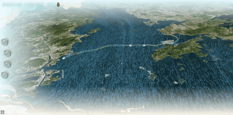Hightopo 采用自主研发的 HT 产品,搭建起一套水墨风的 3D 港珠澳大桥-大湾区管理可视化系统。通过三维建模,结合 HT 丰富的 2D、3D 组态,多角度直观展现大桥结构、效益、地理环境等重点管理对象的运行态势,并围绕经济效益、施工结构等业务,提供了完善的监测管理方案。