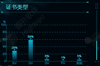 用柱状图显示了不同类型证书的使用比率,运维可根据需求普及某类证书的部署。比如:EVSSL 证书是通过第三方权威机构严格审查其身份后颁发,可以直接在浏览器地址栏直接显示单位名称,有助于增加用户的安全感和对网站的信任度。其严格的审查网站真实身份,使得不法分子很难获得 EVSSL 证书,从而降低用户被钓鱼网站攻击的风险。一般情况下 DV 证书只适合在个人网站或测试系统中使用,由于安全级别较低并不推荐企业用户使用 DV 证书。