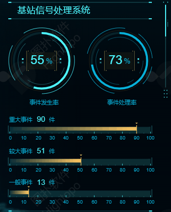 在静态建模基础上,通过叠加多维实时动态数据,进行实时感知和管理。界面左上角不停转动的雷达,扫描基站位置,便于定位管理。