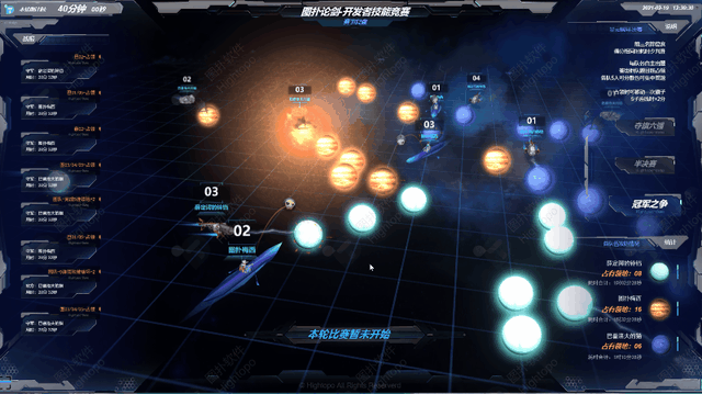 决赛中,通过不同飞船攻击不同棋子,我们能清晰的展示不同队伍的选择和策略。
