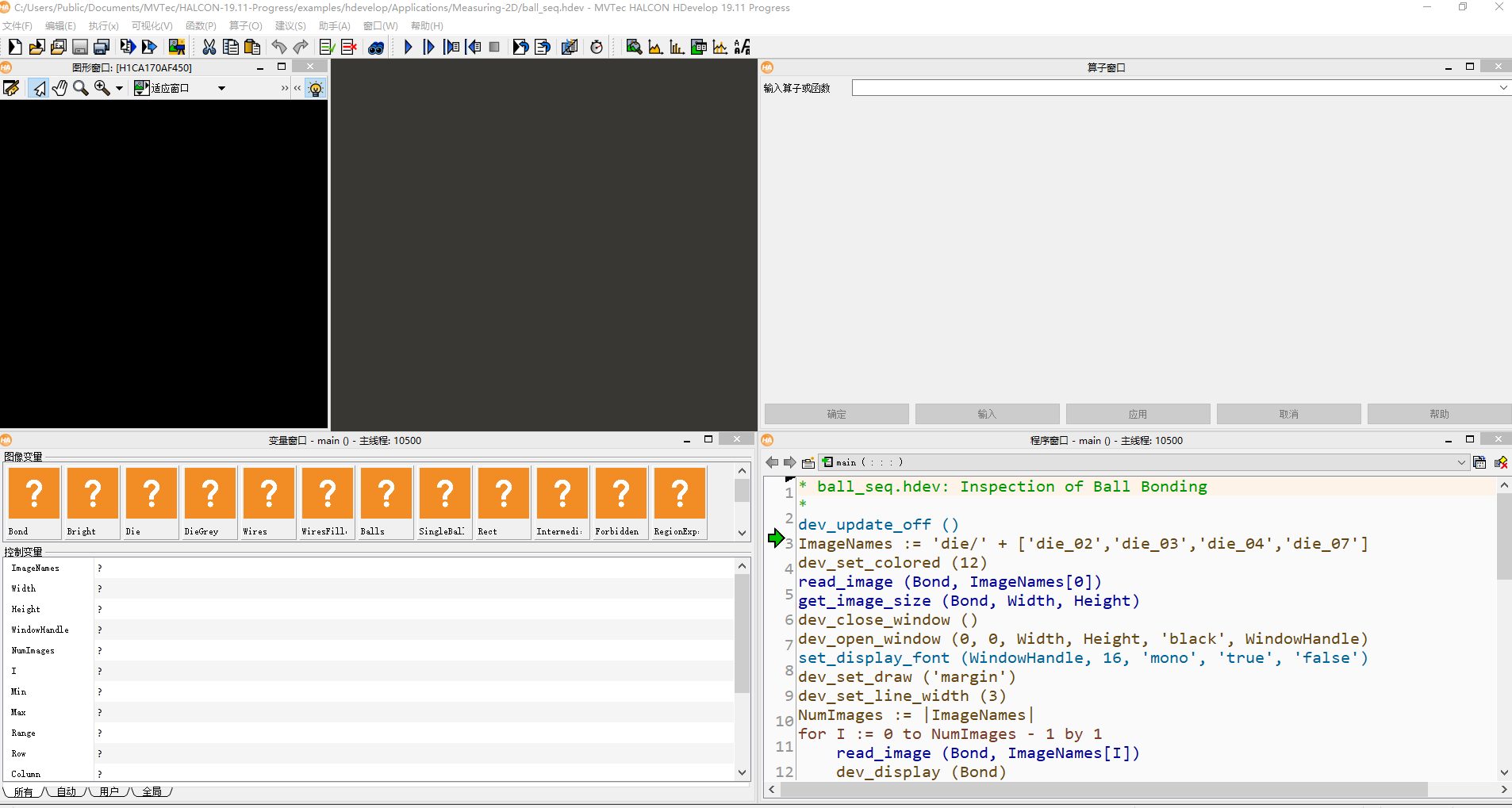 上一节中我们说了Halcon的一个例程,ball_seq.hdev检测环形边界,代码比较长,中间很多代码的作用是为了提高代码的鲁棒性,我们初学者可以省略一些代码,下面打开Halcond的这个例程,再创建一个空白项目,我们在代码的基础上来简化,然后导出。