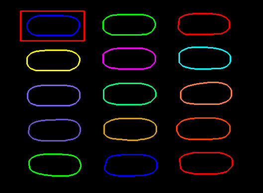 这里使用一个for循环,来创建很多个长方形,圈出胶囊 位置,并且在创建的过程中把所有的区域放到新的数组里面
