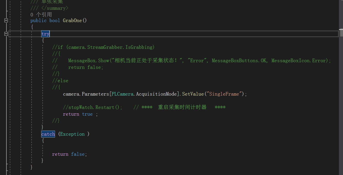 /// 单张采集 /// public bool GrabOne() {