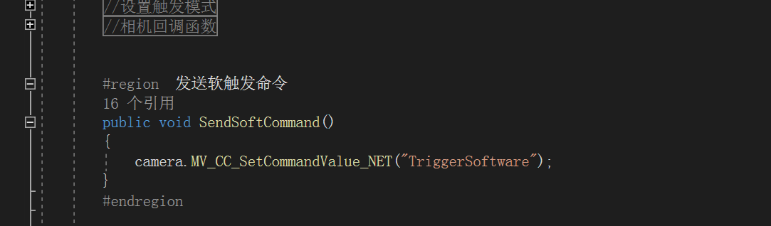 #region 发送软触发命令 public void SendSoftCommand() { camera.MV_CC_SetCommandValue_NET("TriggerSoftware"); } #endregion