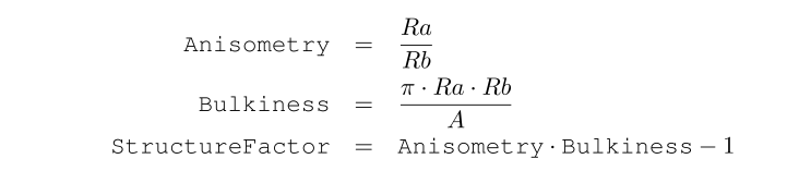 描述: 算子计算给定区域的三种形状特征:等距、粗大和结构因子,具体计算公式如下:
